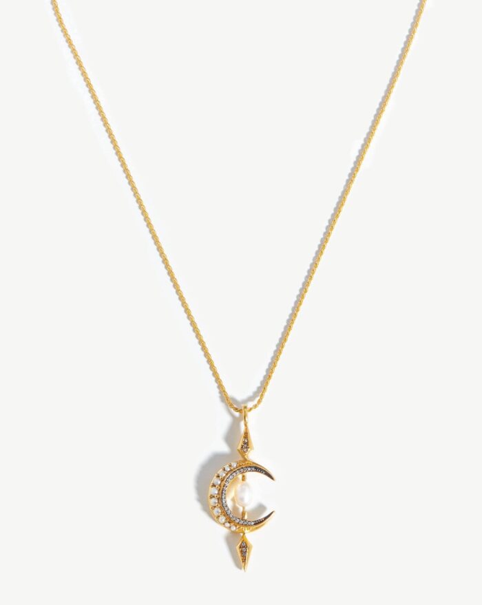 Harris Reed Crescent Moon Pearl Necklace | 18ct Gold Vermeil/Pearl