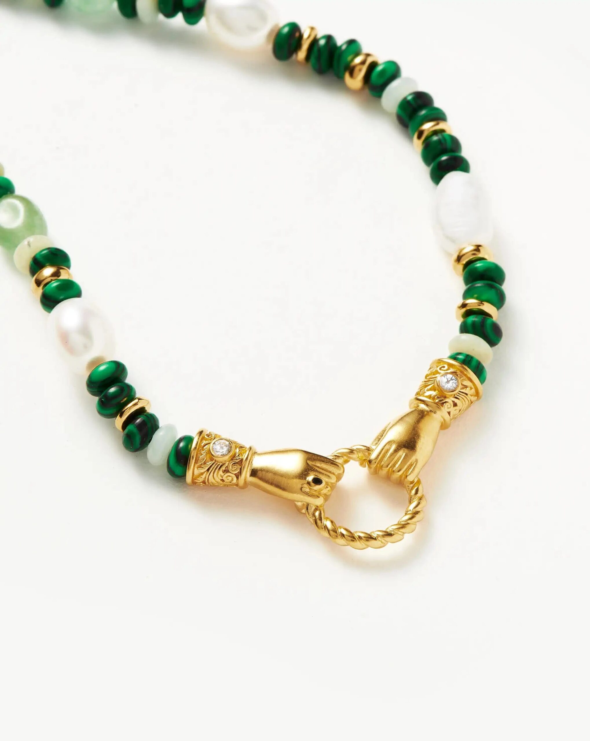 Harris Reed In Good Hands Beaded Gemstone Necklace | 18ct Gold Plated/Multi Green Gemstone & Pearl