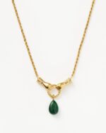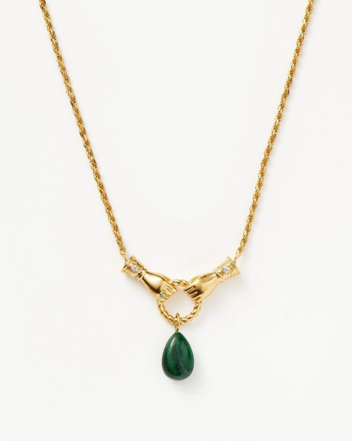 Harris Reed In Good Hands Drop Pendant Necklace | 18ct Gold Plated/Malachite & Pearl