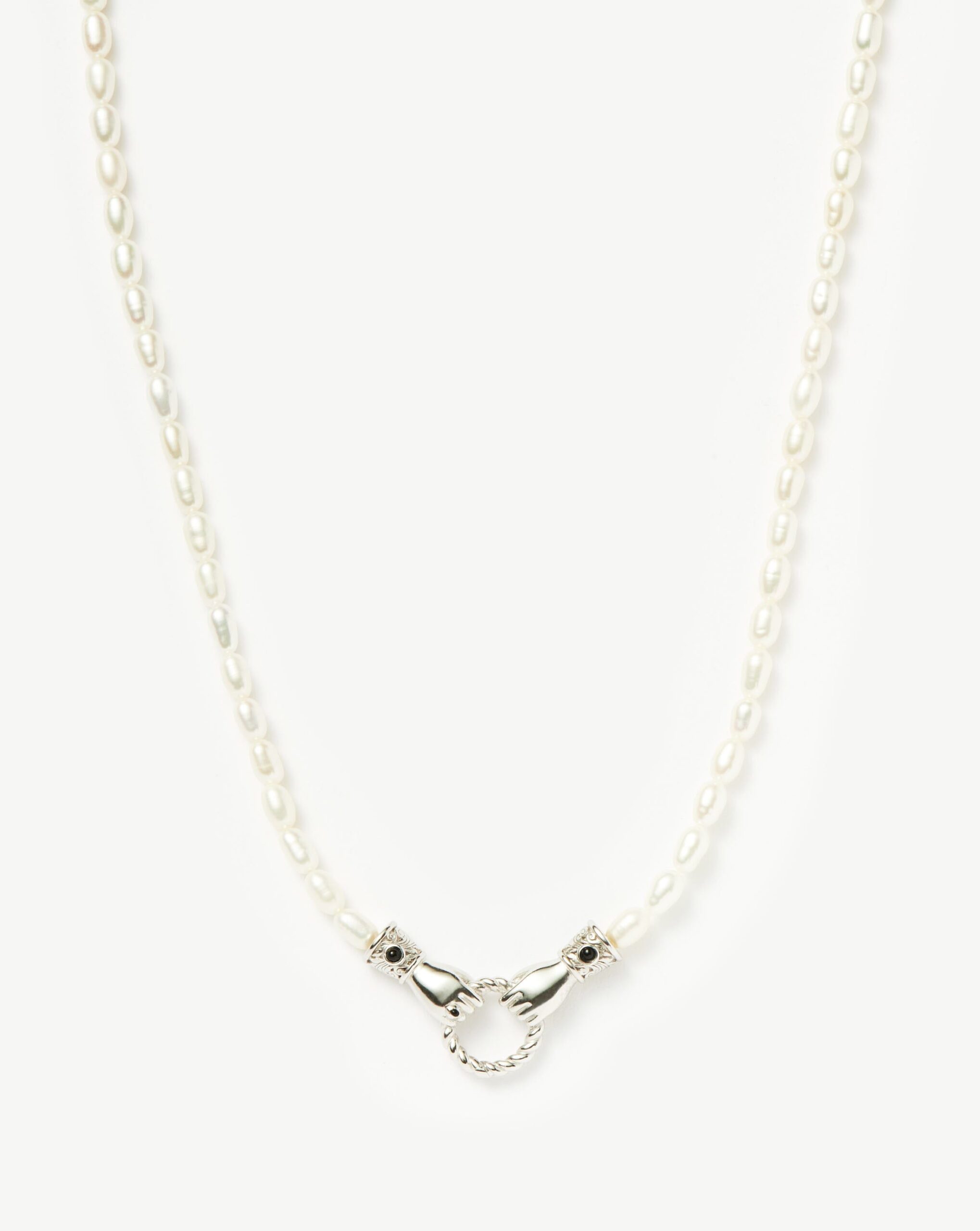Harris Reed In Good Hands Pearl Necklace | Silver Plated/Pearl & Black Onyx