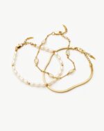 Pearl & Snake Chain Triple Bracelet Set | 18ct Gold Plated